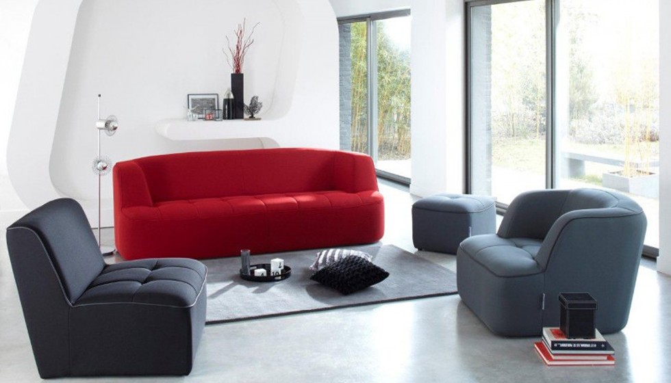 Chesty, ligne très contemporaine accentuée par un passepoil et une assise capitonnée. Le design tout en rondeur de ce modèle ainsi que la modularité offerte par les différents éléments (canapés, fauteuil, chauffeuse, pouf) apporte de la personnalité à tous les salons.