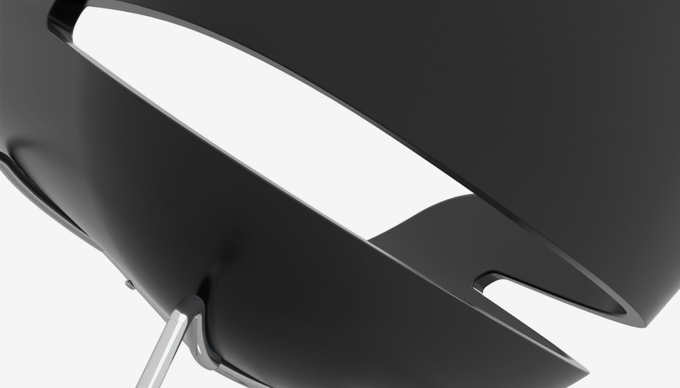 Its organic shape and the opening at the bottom of the backrest reflect the spirit of the Evolution chair (designed by Ora-Ito for Zanotta in 2007). Eva perfectly illustrates the work of Ora-Ito: sober and futuristic lines, a universal and timeless style able to weather time whilst remaining elegant. The rounded shell is made of polyurethane fully reinforced by a steel insert. Its rounded and ergonomic shapes guarantee optimum comfort. The central mast and the swivel base are made of varnished steel.