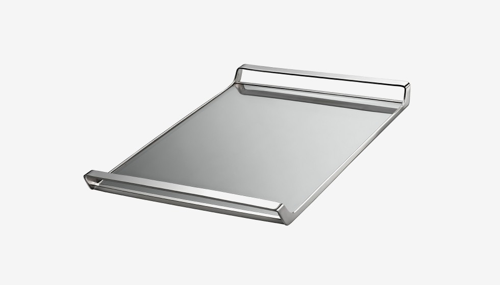 On retrouve les codes de l’univers formel bien défini d’Ora ïto : courbe et contre-courbe, rigorisme et linéarité, ainsi que la ligne brisée qui signe l’esthétique de la collection. L’ergonomie et la logique d’usage du plateau sont parfaitement respectées, dans la version à anses doubles comme dans celle à anse simple.