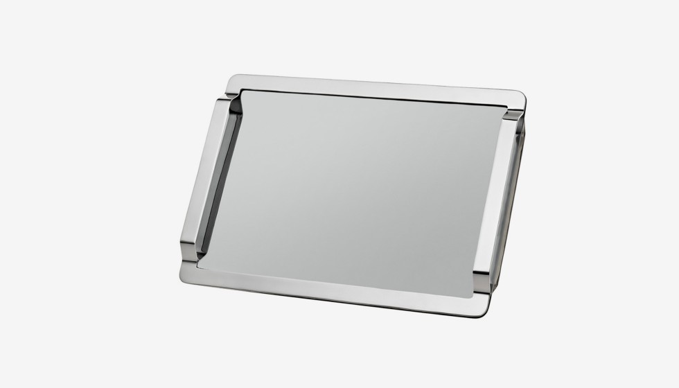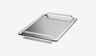 On retrouve les codes de l’univers formel bien défini d’Ora ïto : courbe et contre-courbe, rigorisme et linéarité, ainsi que la ligne brisée qui signe l’esthétique de la collection. L’ergonomie et la logique d’usage du plateau sont parfaitement respectées, dans la version à anses doubles comme dans celle à anse simple.